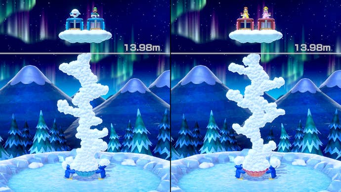 Toad's Rec Room is the only mode that allows two systems to play a game. The downside is that there's only four minigames playable in this way. Also in order to play with two consoles side by side, as seen in in a lot of Super Mario Party's trailers, both Switch owners must own Super Mario Party. The positive is that the minigames are playable without the creative set-up too, but there's only one clear standout that's worth returning to—the tank game.