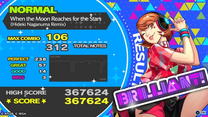 Meguro's always had one hand in shaping the Shin Megami Tensei series, from directing the PSP ports of the first few Personas to moving onto a composer role once Katsura Hashino stepped in with Persona 3 and reinvented the subseries entirely. Here, Meguro's music once again gets the focus, with his signature tracks standing both alone and remixed by Japanese producers, such as Hideki Naganuma (of Jet Set Radio fame) and Tofubeats. The remixes, as they were in Persona 4: Dancing All Night, are largely hit or miss, but Persona 3: Dancing in Moonlight gets the share of better remixes than its counterpart. The Dancing sub-subseries has had one glaring problem since Dancing All Night though: the rhythm game part has never been great. It's serviceable, but not much else.
