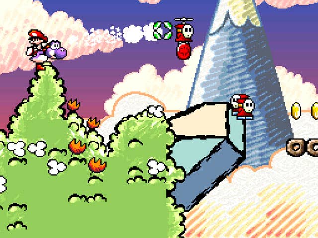 Luckily, it's no chore to re-visit Yoshi's Island; getting sucked into the exotic locale is easier than swallowing a Little Mouser. Yoshi's Island might be the liveliest-looking place Nintendo's ever designed thanks to its storybook-inspired graphics. Everything in this game moves, breathes, dances, sings, and walks on stilts. Crystal-studded caves are complimented by tall waterfalls, and even familiar death traps like mini-fortresses surprise you with hazards that pop out of the background. And then there's the epic boss fights with huge enemies that squash and stretch across the screen thanks to the Super FX2 Chip. Though Nintendo revisited Yoshi's Island again and again on its other consoles, it couldn't rekindle the first game's visual spark until Yoshi's Woolly World for the Wii U.